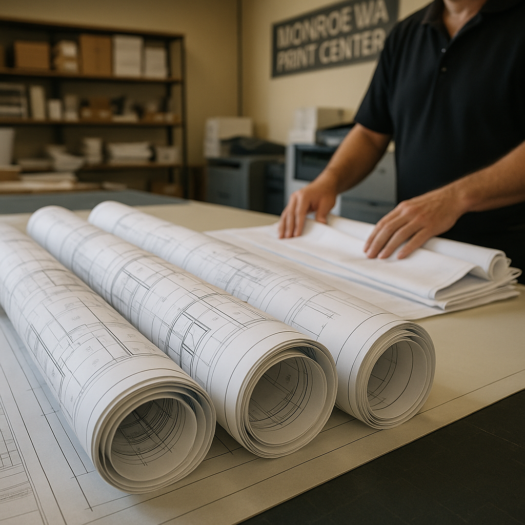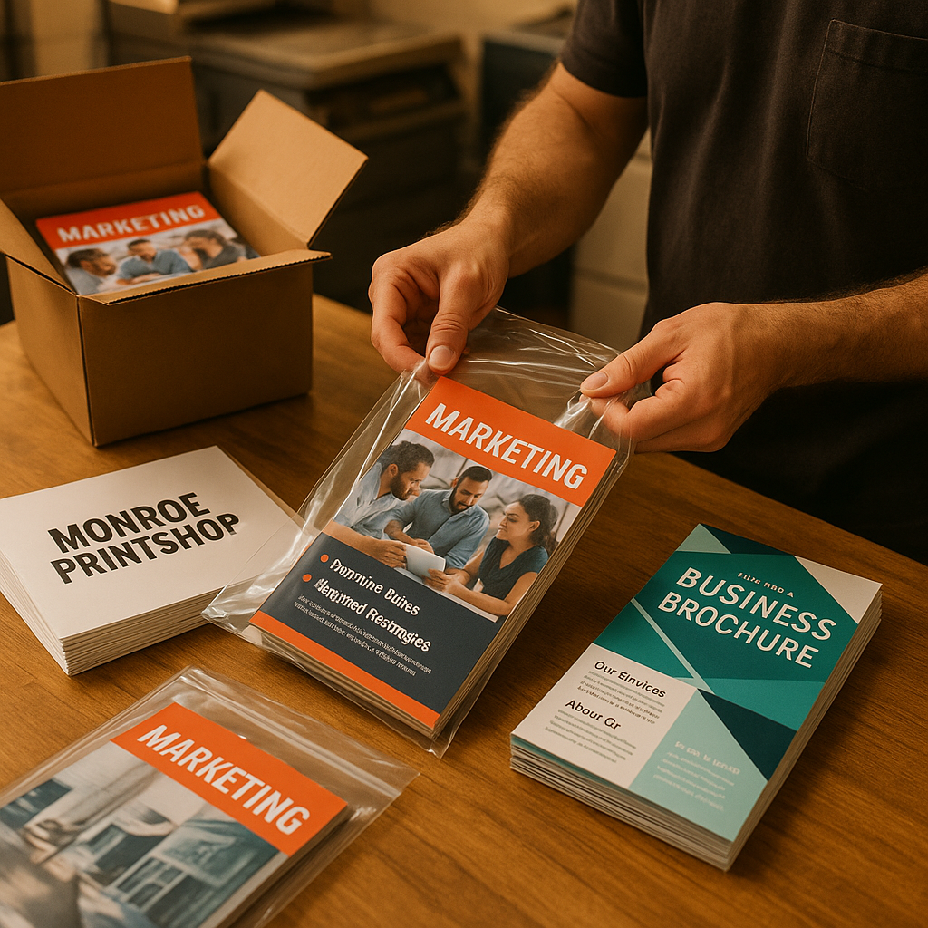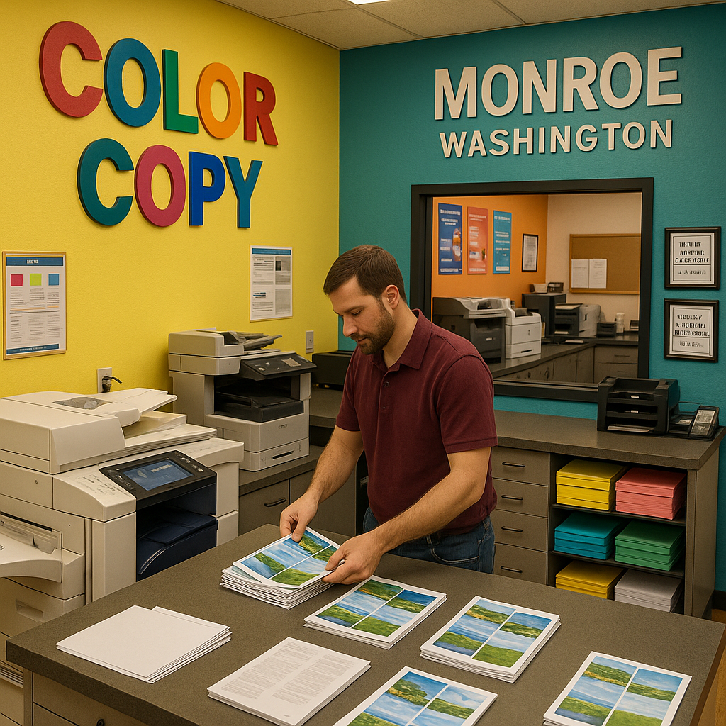 When deadlines move up, our Monroe print desk turns jobs fast. Upload files, approve a proof, and pick up the same day—or have us ship it directly to your client via FedEx.