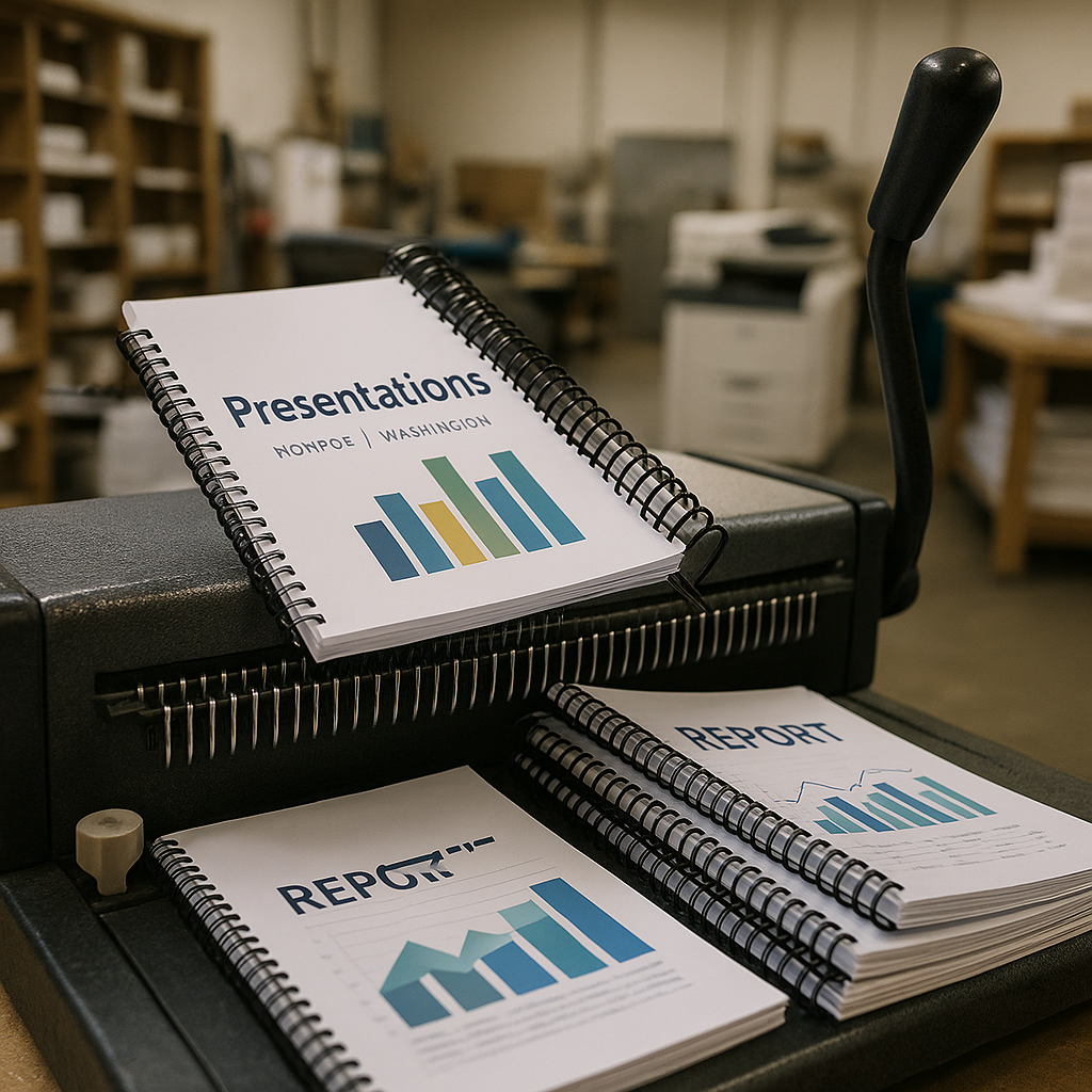 High-speed color and black-and-white printing for proposals, training binders, and classroom packets.
